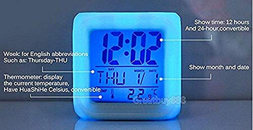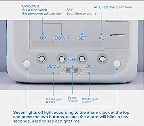 • Features: 1. In OFF mode: the alarm is off and in standby mode, it will be colorful to emit light when you gently push it, allowing you to see the time at night. 2. In ON mode: the alarm keeps the lighting all the same, changing 7 colors automatically. Best Christmas Gift, Birthday Gift for boys and girls.