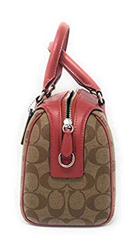 • DIMENSION. 9" (L) x 7" (H) x 5" (W) Handles 4” drop and 23” for shoulder.ELEGANT MATERIAL. de 100% quality Printed coated canvas with smooth red leather details. Plus zip-top closure fabric lining.