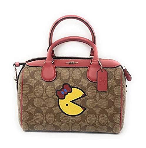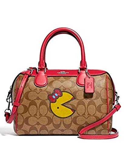 Details: Printed coated canvas with smooth leather details Inside zip and multifunction pockets Zip-top closure, fabric lining Handles with 4" drop Detachable strap with 23" drop for shoulder or crossbody wear 9" (L) x 6 1/2" (H) x 5" (W) Ms. PAC-MAN&BANDAI NAMCO Entertainment Inc. Style No. F73670