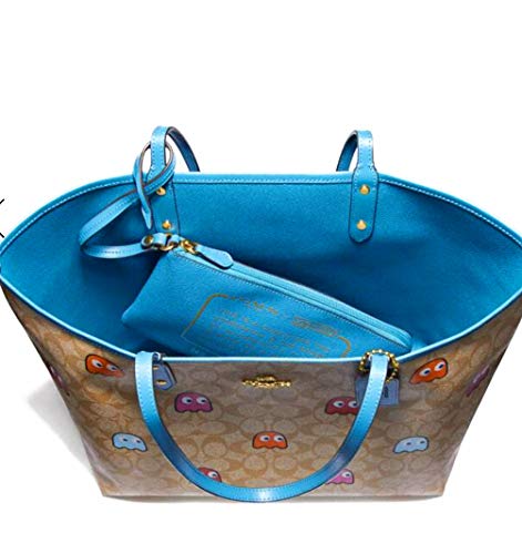Details: Signature coated canvas and smooth leather Reversible Removable pouch Handles with 9 1/2" drop 13" (L) x 11 1/2" (H) x 6 1/4" (W) PAC-MAN&BANDAI NAMCO Entertainment Inc. Style No. F72905