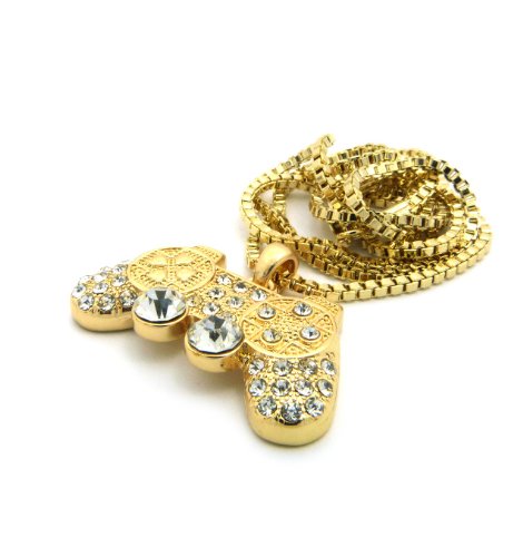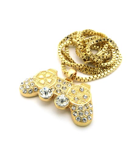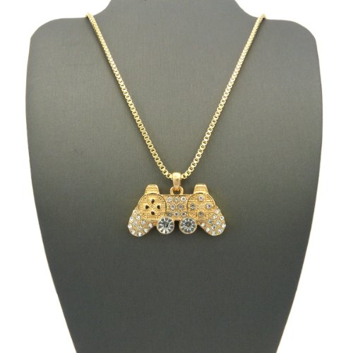 NYFASHION101 Iced Out Game Controller Micro Pendant w/ 24" Box Chain Necklace