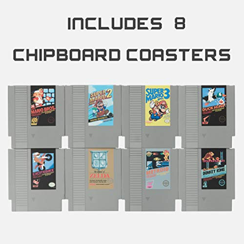 • RETRO DESIGN: Impress your friends with these wicked vintage coasters that feature some of the NES’s most iconic games including Metroid, Donkey Kong, and The Legend of Zelda.