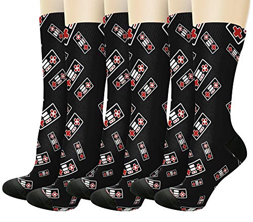 Retro Gamepad Socks: 8-Bit Gamer Girl Crew - 6 Pairs