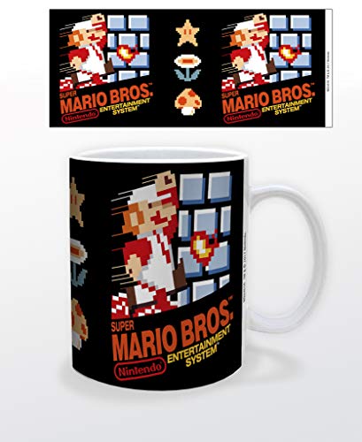 Details: Super Mario 11 ounce ceramic mug. 100% ceramic mug with sublimated image of the cover of the Super Mario Bros. NES game.