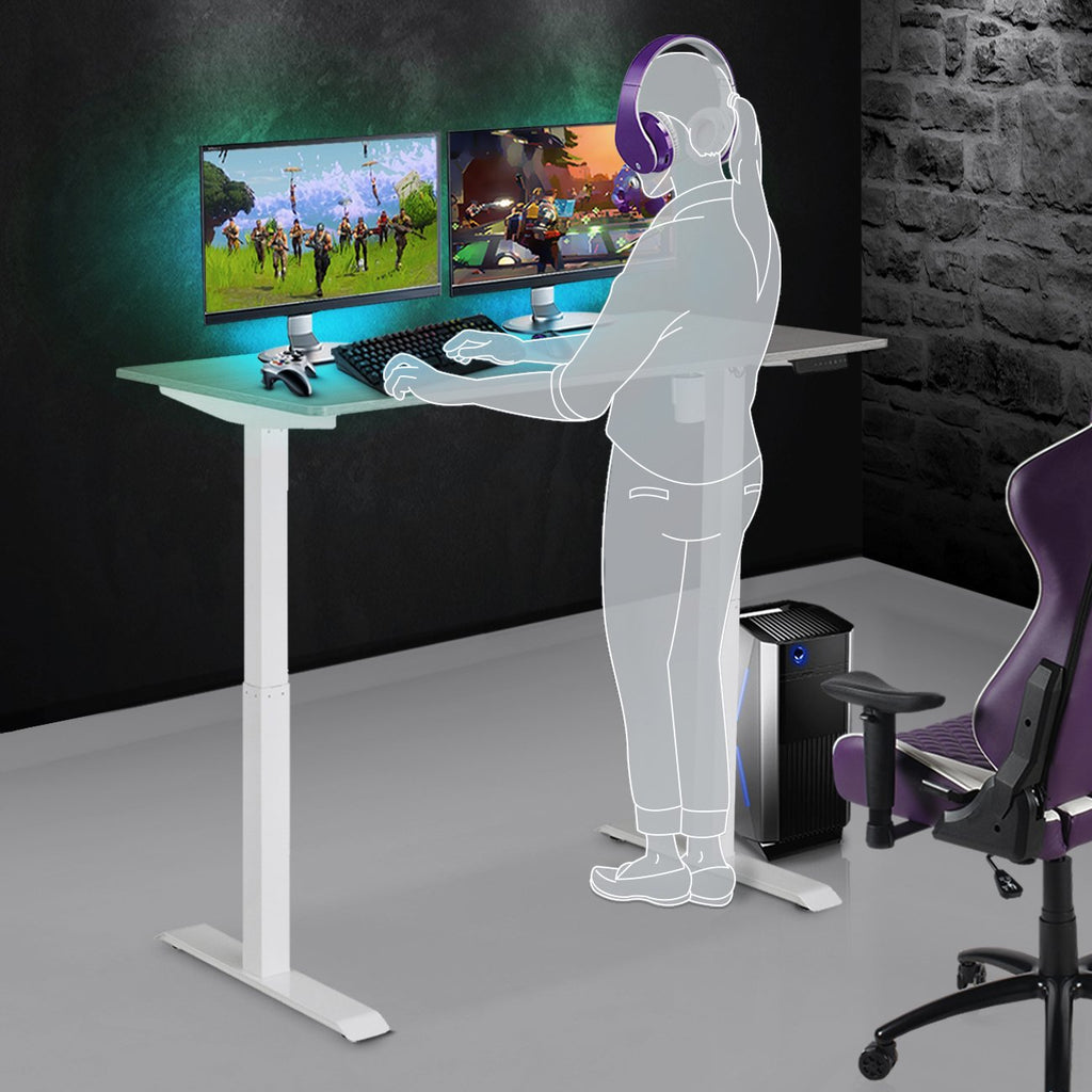 Shop for high-quality, low price gaming desks for guys and girls in all shapes, sizes and brands at Gaming Girlfriends. Don't lose your game with the Aria adjustable sit-to-stand gaming desk. Make sure you are gaming healthy while stretching and taking a break from sitting between the long gaming sessions. Level up your gaming expertise with an improved focus and uplifted mood. Your concentration and creativity are essential to your success, and they will be improved by the flexibility only a standing desk can deliver. With a power height adjusting button, the Aria elevating desk rises up or down to one of the four different height positions.