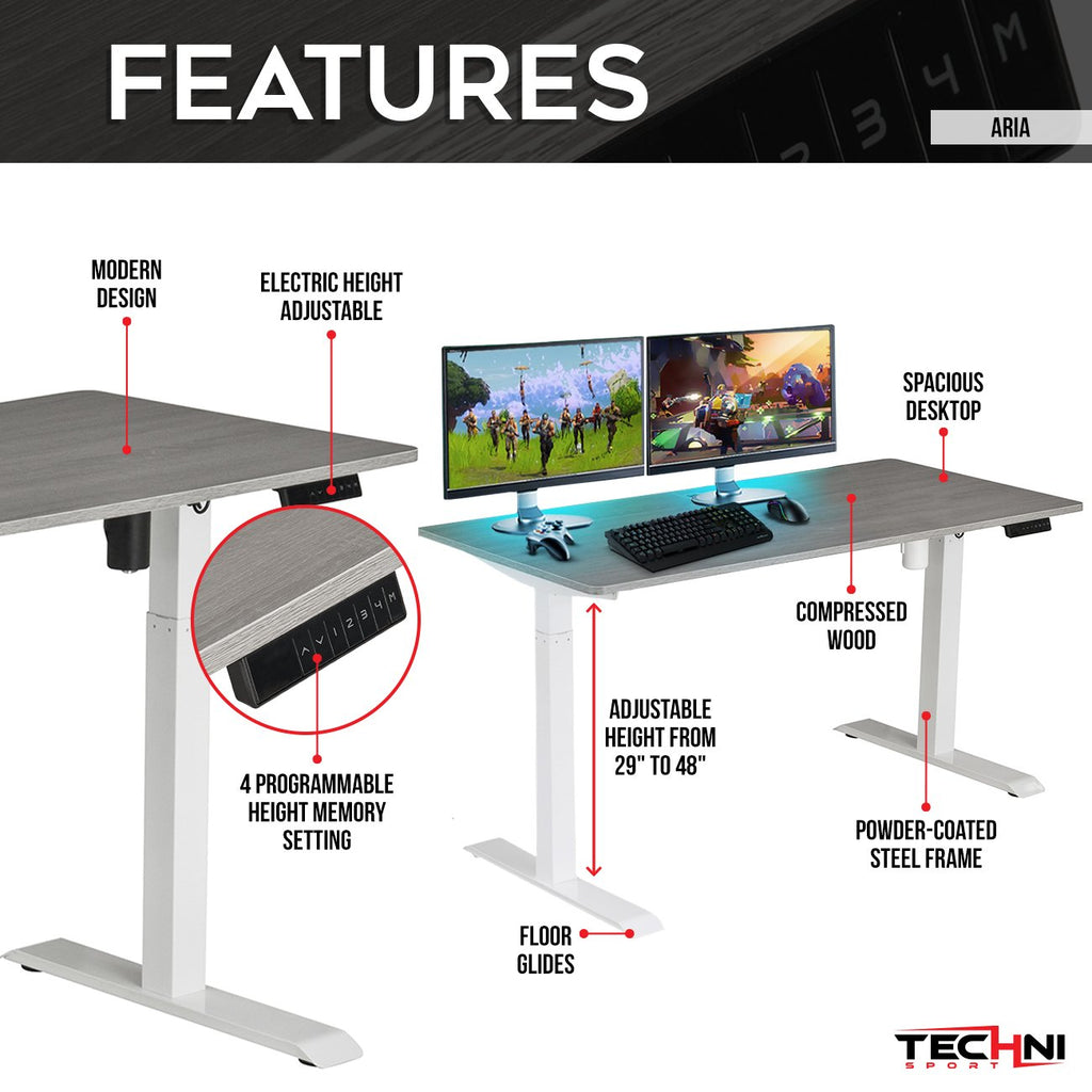 Techni Sport Adjustable Sit to Stand Gaming Desk - Aria